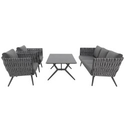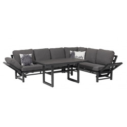 Luxusní zahradní sestava, která může být celoročně venku. Je velmi variabilní, lze obrátit strany a nebo pohovku rozdělit. Pro Vaše maximální pohodlí má polohovací boční opěrky. Konstrukce je vyrobena z lehkého odolného a bezúdržbového hliníku. Sestava obsahuje 2 x 3místnou pohovku a stůl. Součástí jsou šedé nadýchané polstry, potahy jsou snímatelné (lze...