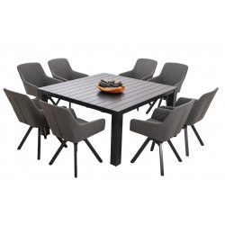 Tato luxusní souprava je vhodná pro každého, kdo hledá elegantní nábytek s mimořádnou odolností vůči nepřízni počasí. Sestava se skládá z 8 otočných křesel a velkého hliníkového čtvercového stolu.