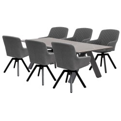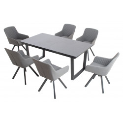 Tato luxusní souprava je vhodná pro každého, kdo hledá elegantní nábytek s mimořádnou odolností vůči nepřízni počasí. Sestava se skládá ze 6 otočných křesel a velkého hliníkového rozkládacího stolu.