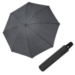 Pánský holový vystřelovací deštník. Kostra deštníku je vyrobena z oceli černá kostra zaručuje pevnost a stabilitu. Odolný proti korozi. Polyesterový potah je odolný proti změnám vlhkosti a teplot, nesráží se. Potah šedý se vzorem káro. Veliká střecha.