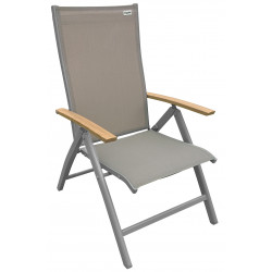 Polohovací zahradní křeslo EXPERT WOOD je vyrobeno z bezúdržbových materiálů. Stabilní hliníková konstrukce ve světle šedé barvě je doplněna výpletem z kvalitní umělé textilie v greige barvě. 7stupňový polohovací systém opěrky zaručí maximálně komfortní odpočinek. Čisté linie křesla vkusně doplňují hliníkové područky s práškovým nástřikem v dekoru dřeva....
