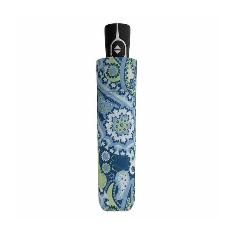 Kvalitní a elegantní dámský plně automatický deštník Fiber Magic Paisley blue s moderním vzorem. Kostra deštníku je vyrobena v kombinaci materiálů ocel / sklolaminát / hliník a zaručuje pevnost a stabilitu. Odolný proti korozi. Při otočení deštníku nedojde k jeho poškození.