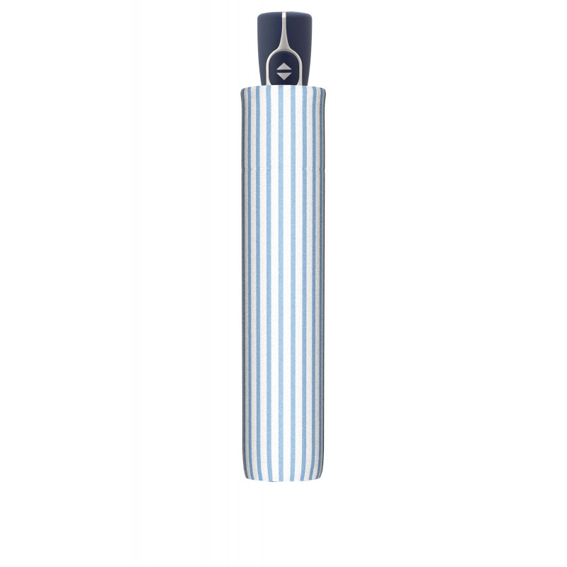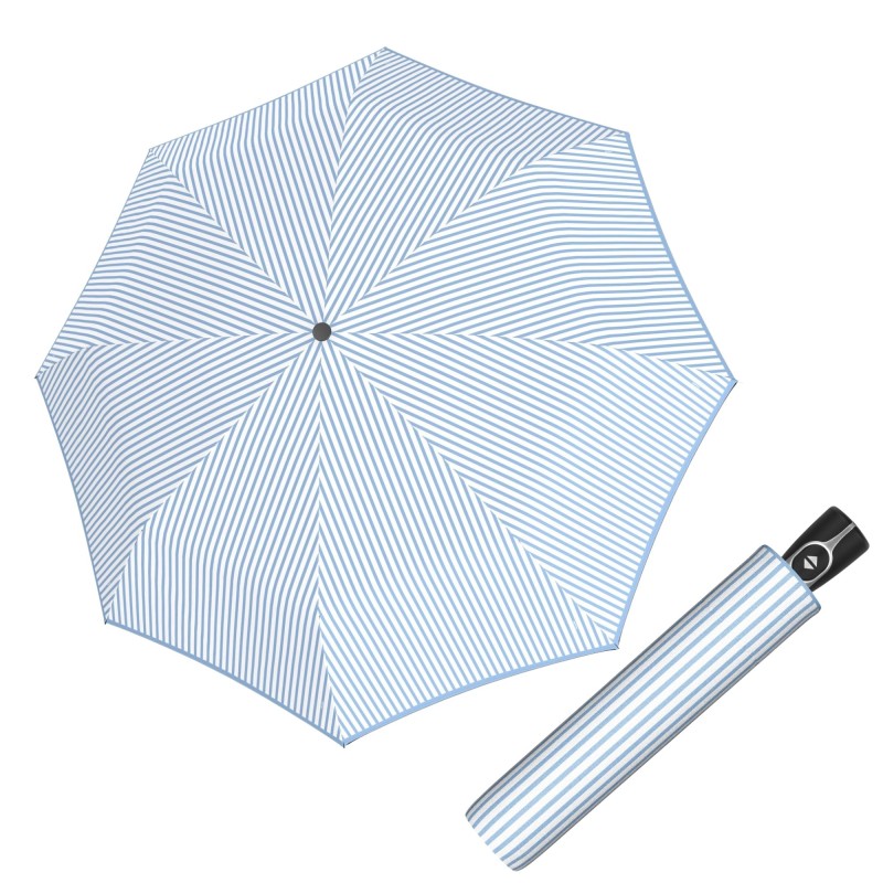 Dámský plně automatický deštník. Má pruhovaný vzor v modré barvě. Kostra deštníku je vyrobena v kombinaci materiálů sklolaminát a ocel. Toto zaručuje pevnost a stabilitu. Při otočení deštníku nedojde k jeho poškození.