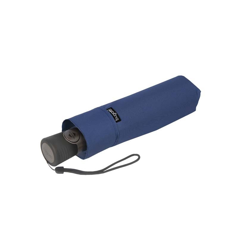 Elegantní pánský plně automatický skládací deštník navy od trendy značky bugatti. Deštník zaujme i svou velikostí s pouhými 28 cm délky se vejde do každé kabelky. Konstrukce z ocele, sklolaminátu a hliníku poslední díl ramene ze sklolaminátu zajišťuje pružnost deštníku ve větru. Polyesterový potah je odolný proti změnám vlhkosti a teplot, nesráží se.