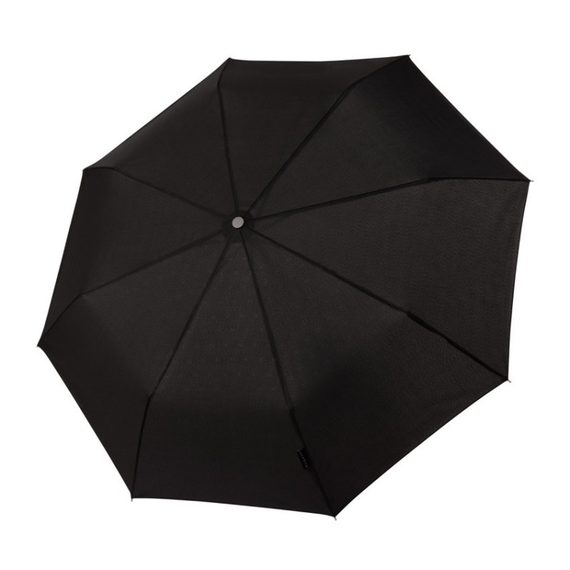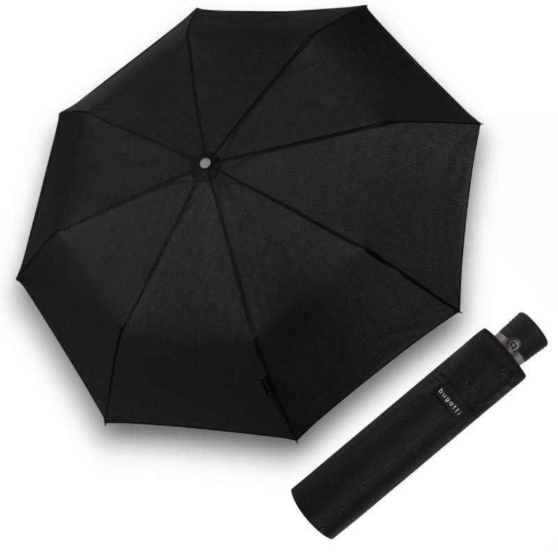 Elegantní pánský/dámský skládací deštník od trendy značky bugatti. Deštník zaujme i svou velikostí s pouhými 25 cm délky se vejde do každé kabelky. Konstrukce z ocele, sklolaminátu a hliníku poslední díl ramene ze sklolaminátu zajišťuje pružnost deštníku ve větru. Polyesterový potah je odolný proti změnám vlhkosti a teplot, nesráží se.