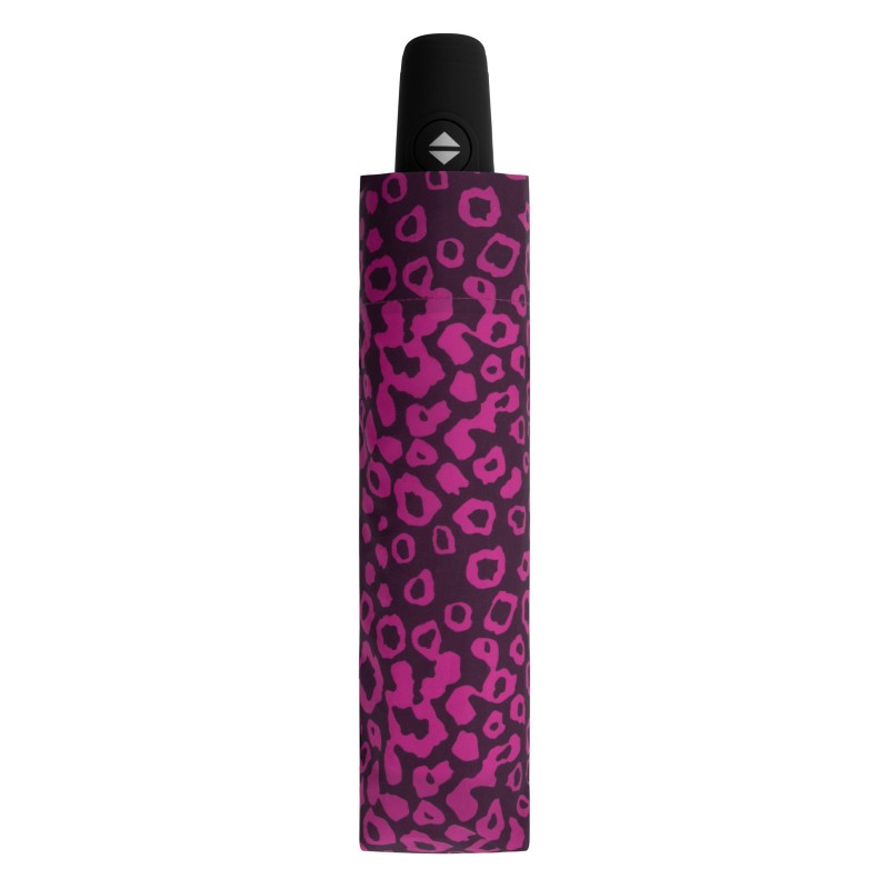 Dámský plně automatický deštník s moderním vzorem. Lze jej snadno a rychle otevřít i zavřít jednou rukou pouhým zmáčknutím tlačítka. Díky kompaktní velikosti jej snadno vložíte do kabelky i tašky. Má černou konstrukci z kombinace sklolaminátu a oceli, která mu dodává pevnost a stabilitu. Při otočení deštníku nedojde k jeho poškození. Potah vyrobený z tenké tkaniny pongee je příjemný na dotek a odolný vůči změnám vlhkosti a teplot, nesráží se.