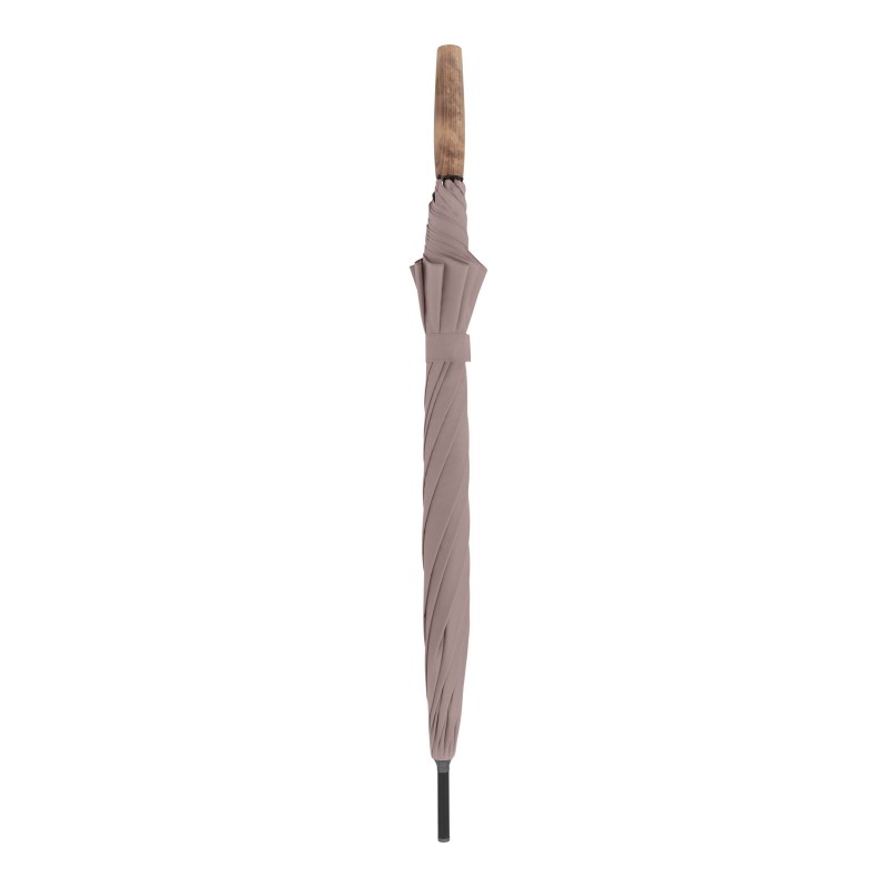 Moderní a odolný deštník Deštník s rukojetí z německého dřeva z certifikovaných zdrojů nabízí elegantní design a příjemný úchop. Pevná konstrukce z ocelové tyče a výztuh z oceli a pružného sklolaminátu zajišťuje vysokou stabilitu. Stříška ze 100% ePET materiálu je šetrnější k životnímu prostředí a celý deštník je navržen tak, aby spolehlivě odolával větru.