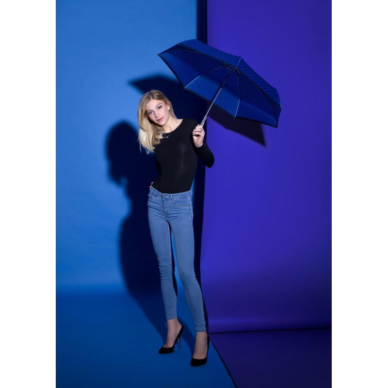 Elegantní dámský skládací deštník v módním vzoru puntíků. Model mini hit flat dots se hodí do každé kabelky, protože nezabírá moc místa je plochý, lehký a velice skladný. Konstrukce je vyrobena z oceli a má černou barvu.