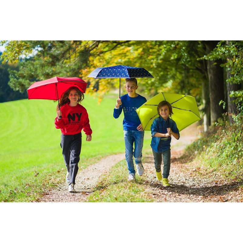 Nový deštník pro děti a studenty. Robustní deštník s kompaktní velikostí balení a reflexními pruhy. Snadné použití s nízkou hmotností pouhých 205 g. Exkluzivní design rukojeti s elastickým páskem na zápěstí.