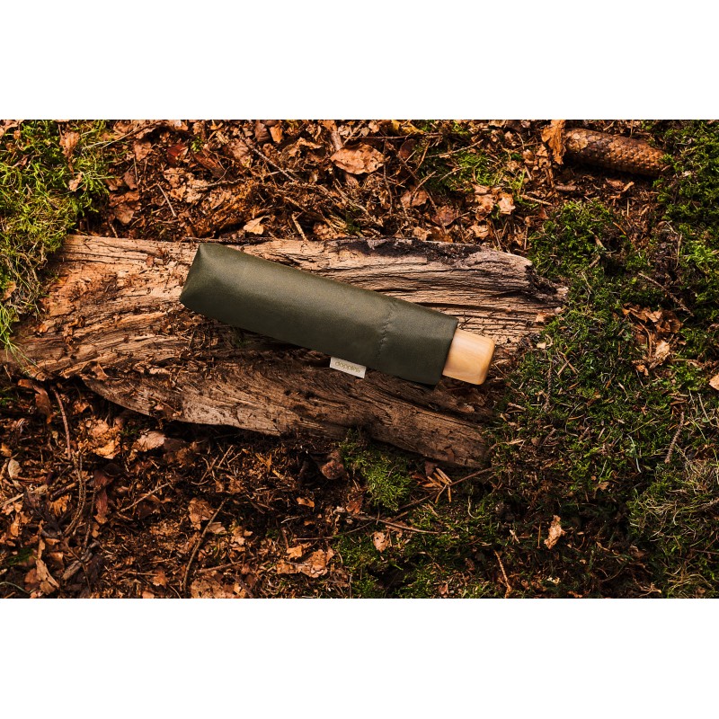 Skládací deštník Nature Mini je vyrobený z EKO materiálů šetrných k životnímu prostředí. Tkanina deštníku je vyrobena z 2 recyklovaných PET lahví, ručka deštníku je ze dřeva s FSC certifikátem (dřevo schima superba).