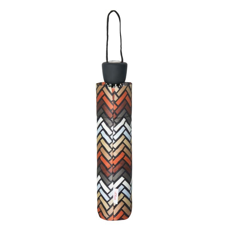 Elegantní skládací deštník od značky s.Oliver s výrazným geometrickým vzorem. Díky délce pouhých 25 cm se snadno vejde do každé kabelky. Ocelová konstrukce a kvalitní polyesterový potah zajišťují pevnost a odolnost vůči změnám vlhkosti a teplot.