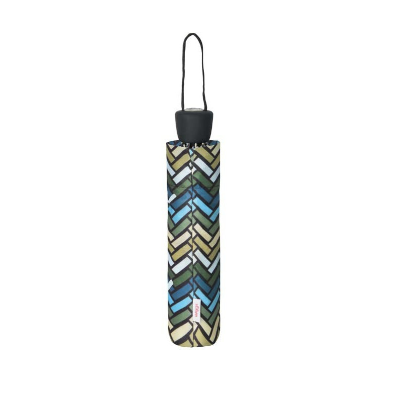 Elegantní skládací deštník od značky s.Oliver s výrazným geometrickým vzorem. Díky délce pouhých 25 cm se snadno vejde do každé kabelky. Ocelová konstrukce a kvalitní polyesterový potah zajišťují pevnost a odolnost vůči změnám vlhkosti a teplot.