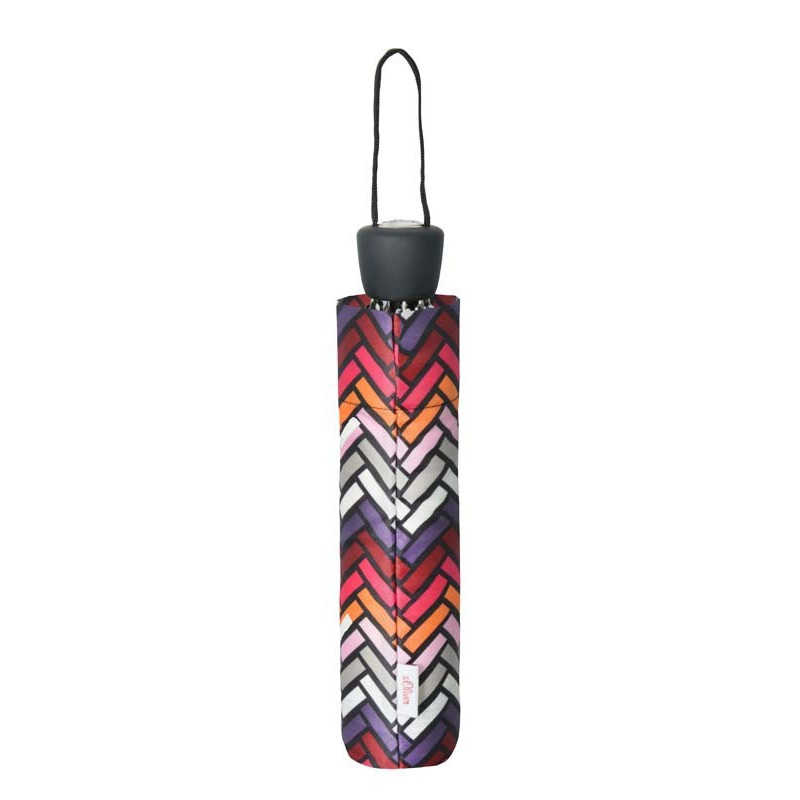 Elegantní skládací deštník od značky s.Oliver s výrazným geometrickým vzorem. Díky délce pouhých 25 cm se snadno vejde do každé kabelky. Ocelová konstrukce a kvalitní polyesterový potah zajišťují pevnost a odolnost vůči změnám vlhkosti a teplot.