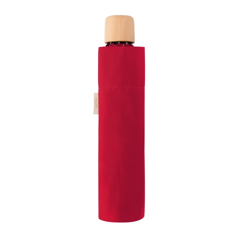 Skládací deštník Nature Mini je vyrobený z EKO materiálů šetrných k životnímu prostředí. Tkanina deštníku je vyrobena z 2 recyklovaných PET lahví, ručka deštníku je ze dřeva s FSC certifikátem (dřevo schima superba).