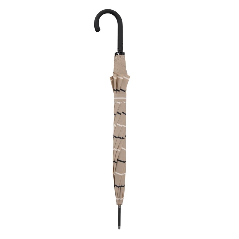Elegantní vystřelovací deštník s moderním vzorem, který vyniká odolnou konstrukcí z oceli a sklolaminátu. Díky pružným materiálům zvládne i převrácení větrem a snadno se vrátí zpět bez poškození.