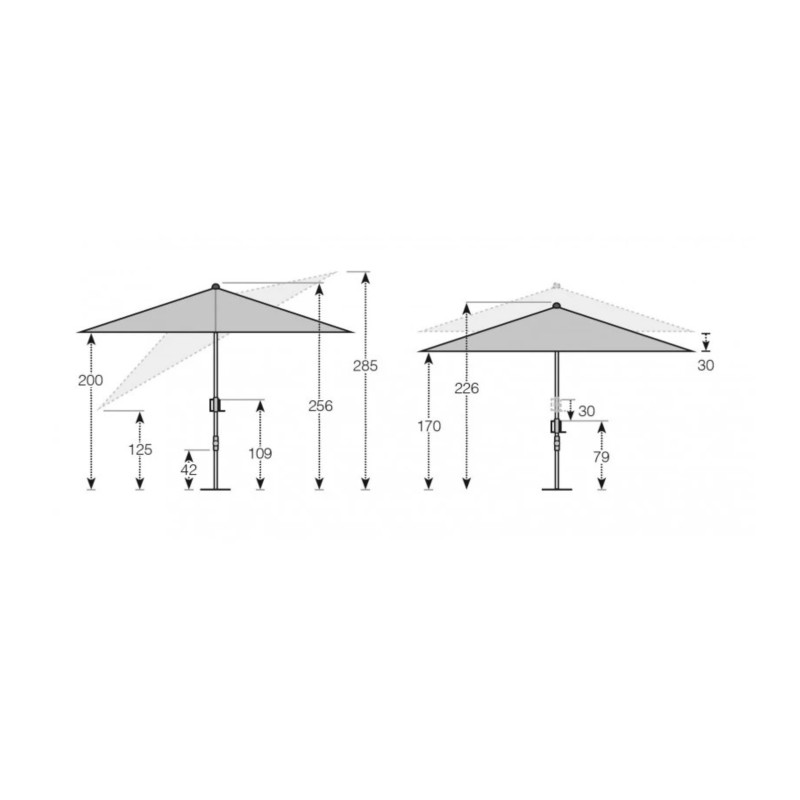 Luxusní zahradní slunečník od prémiové značky Knirps je výškově nastavitelný až o 30 cm a vybavený klikovým mechanismem umožňujícím snadné naklápění. Má lehkou a pevnou hliníkovou konstrukci a kvalitní potah s vysokou ochranou před UV zářením SPF 80.