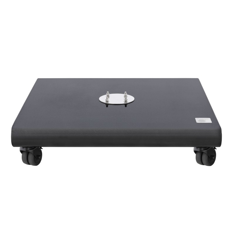 Žulový stojan Knirps 140 kg je elegantním a praktickým řešení zatížení slunečníků s boční nohou. Má základnu z černé leštěné žuly, kterou vkusně zdobí logo Knirps. Stojan je vybavený 4 uzamykatelnými kolečky. Tento stojan je vhodný pro slunečníky s boční nohou Knirps 275 x 275 a Knirps 340.