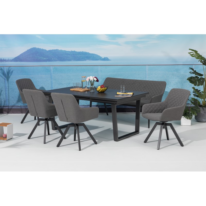 Velký zahradní rozkládací stůl je moderní, nadčasový zahradní nábytek. Jednoduché a čisté linie stolu jsou vhodné do každého prostředí. Konstrukce stolu je vyrobená z vysoce kvalitní hliníkové slitiny v antracitové barvě. Deska stolu je z 5mm skla s nástřikem imitujícím vzhled keramiky.
