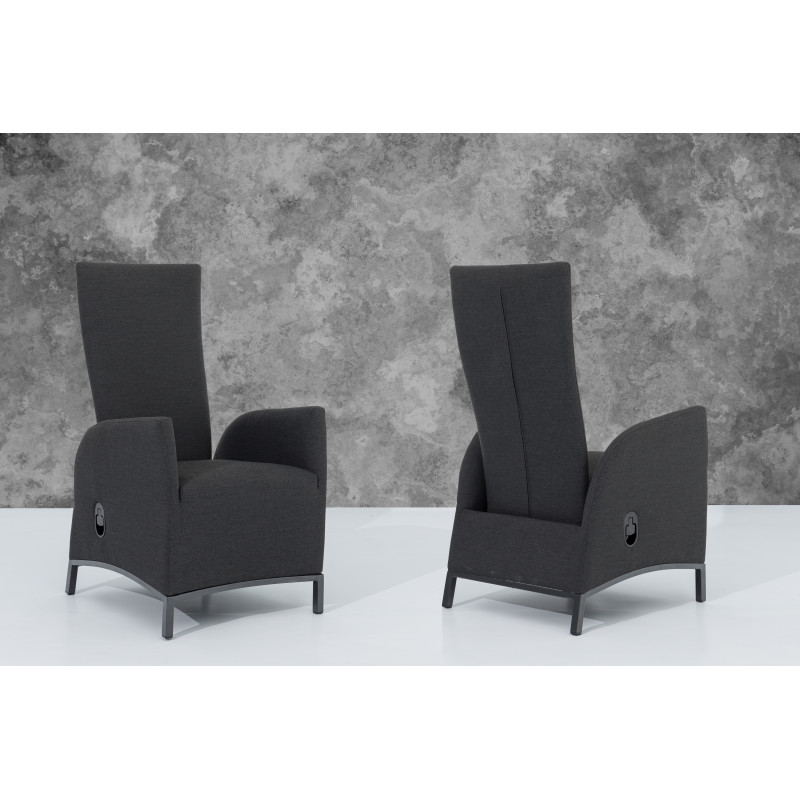 Křesla mají lehkou hliníkovou konstrukci a jsou polstrované prošívanou, vysoce odolnou tkaninou Lika-Tex. Ta je měkká, prodyšná, odolná vůči vodě, špíně, slunečnímu záření i plísním a příjemná na omak. Především ale umožňuje nechávat nábytek celoročně venku. Křesla mají navíc pro maximální pohodlí extra vysokou opěrku a lze je možné je snadno a plynule polohovat.