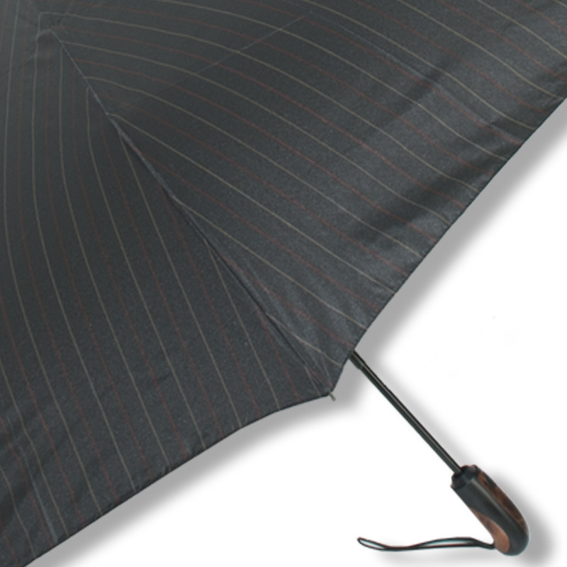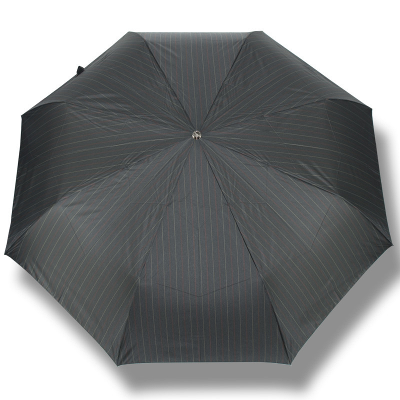 Partnerský plně automatický skládací deštník. Potah černý s šedými pruhy. Velice kvalitní konstrukce ze sklolaminátu, oceli a karbonu. Poslední dva díly ze sklolaminátu, při převrácení deštníku větrem nedojde k jeho poškození, deštník se snadno překlopí zpět do původní polohy. Veliká střecha a praktické pouzdro na zip. Polyesterový potah je odolný změnám...