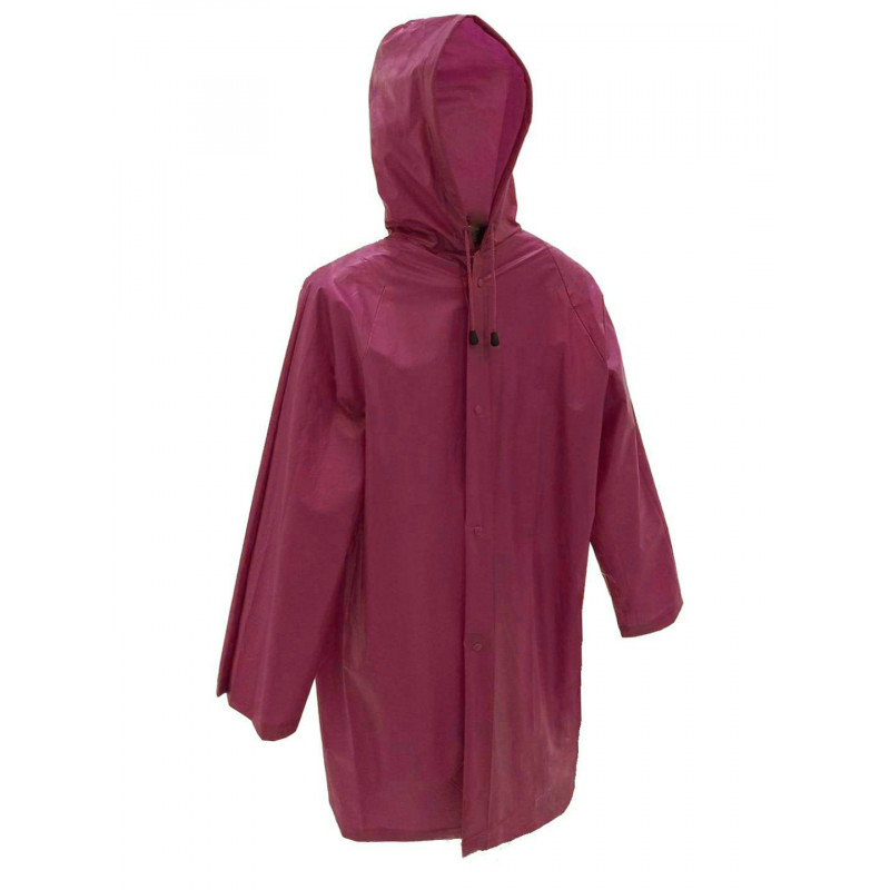 Pláštěnka pro dospělé vínové barvy s kapucí a patentky. Pláštěnka je skladná vhodná na výlety i denní nošení do města. Pevný odolný materiál oproti ‚‚běžným"" pláštěnkám, jen tak se neprotrhne.