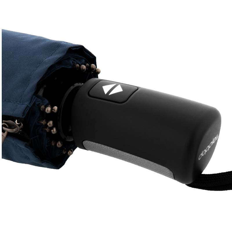Pánský plně automatický deštník. Kostra deštníku je vyrobena v kombinaci materiálů sklolaminát a hliník zaručuje pevnost a stabilitu. Při otočení deštníku nedojde k jeho poškození. Odolný proti korozi. Polyesterový potah je odolný proti změnám vlhkosti a teplot, nesráží se.
