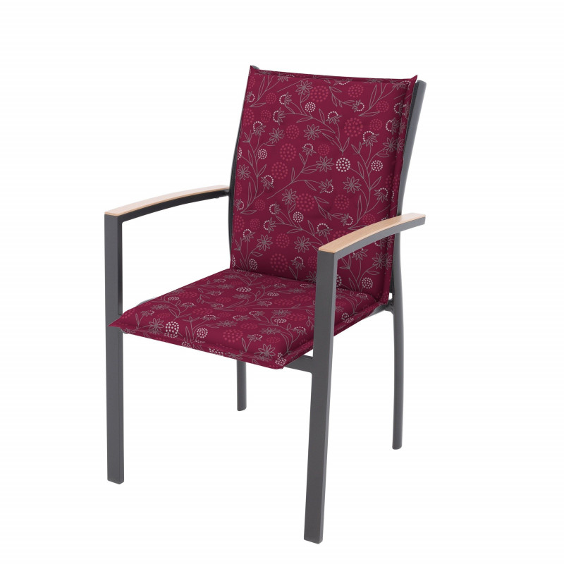 Polstr s vysokou opěrkou na zahradní nábytek řady LIVING je v provedení s obšitým lemem, prošitý kroužkově 4x v opěradle. Uchycení je pomocí posuvné spony. Díky sponě si můžete nastavit velikost dle rozměru a druhu židle, spona je pevná a nevytahuje se. Upevnění sedáku je pomocí dvou tkaniček v ohybu polstru. Síla polstru je optimální pro všechny druhy...