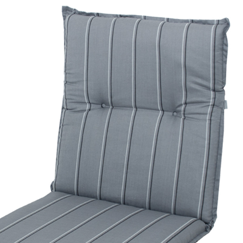 Polstr s nízkou opěrkou na zahradní nábytek řady LIVING je v provedení s obšitým lemem, prošitý kroužkově 2x v opěradle. Uchycení je pomocí posuvné spony. Díky sponě si můžete nastavit velikost dle rozměru a druhu židle, spona je pevná a nevytahuje se. Upevnění sedáku je pomocí dvou tkaniček v ohybu polstru. Síla polstru je optimální pro všechny druhy židlí. Provedení je vhodné i do náročných podmínek kaváren, zahrádek a restaurací. Potah je nesnímatelný.