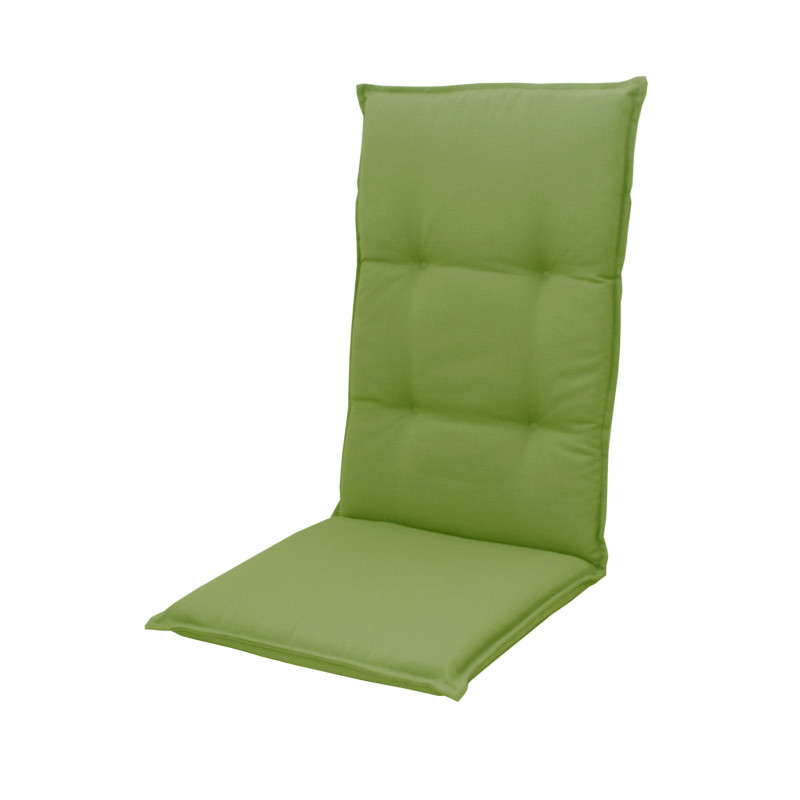 Polstr s vysokou opěrkou na zahradní nábytek řady LIVING HIT je v provedení s obšitým lemem, prošitý kroužkově 4x v opěradle. Uchycení je pomocí posuvné spony. Díky sponě si můžete nastavit velikost dle rozměru a druhu židle, spona je pevná a nevytahuje se. Upevnění sedáku je pomocí dvou tkaniček v ohybu polstru. Potah je nesnímatelný.