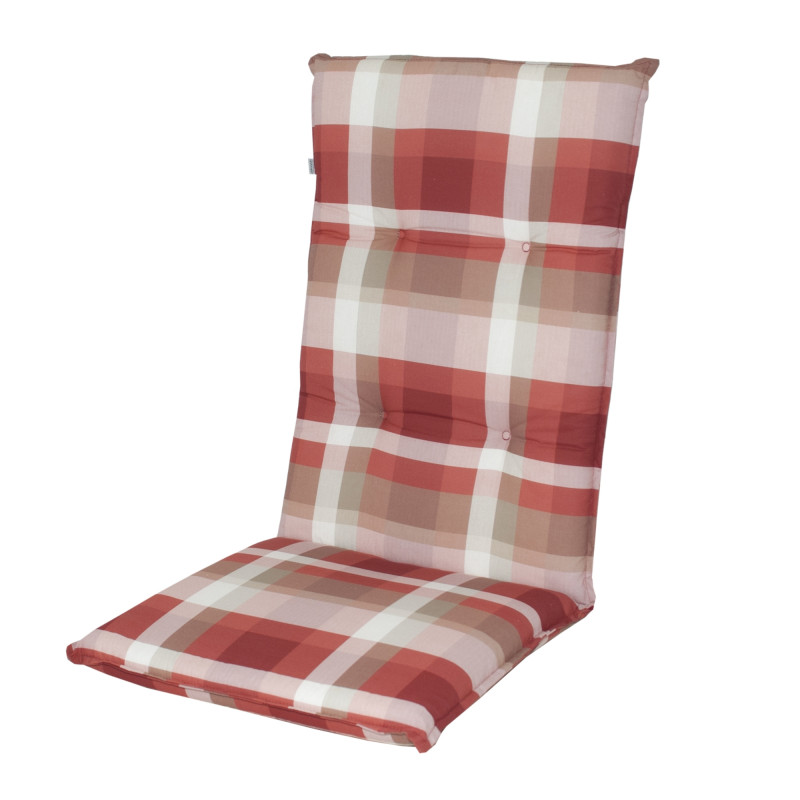 Polstr s vysokou opěrkou na zahradní nábytek řady LIVING je v provedení s obšitým lemem, prošitý kroužkově 4x v opěradle. Uchycení je pomocí posuvné spony. Díky sponě si můžete nastavit velikost dle rozměru a druhu židle, spona je pevná a nevytahuje se. Upevnění sedáku je pomocí dvou tkaniček v ohybu polstru. Síla polstru je optimální pro všechny druhy...