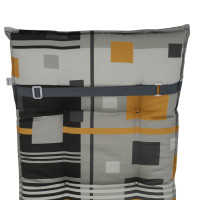 Polstr se střední opěrkou řady LIVING je v provedení s obšitým lemem, prošitý kroužkově 2x v opěradle. Uchycení je pomocí posuvné spony. Díky sponě si můžete nastavit velikost dle rozměru a druhu židle, spona je pevná a nevytahuje se. Upevnění sedáku je pomocí dvou tkaniček v ohybu polstru. Síla polstru je optimální pro všechny druhy židlí. Provedení je vhodné i do náročných podmínek kaváren, zahrádek a restaurací. Potah je nesnímatelný.