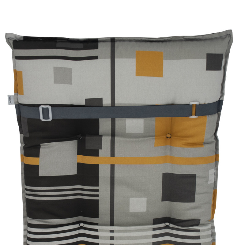 Polstr s vysokou opěrkou na zahradní nábytek řady LIVING je v provedení s obšitým lemem, prošitý kroužkově 4x v opěradle. Uchycení je pomocí posuvné spony. Díky sponě si můžete nastavit velikost dle rozměru a druhu židle, spona je pevná a nevytahuje se. Upevnění sedáku je pomocí dvou tkaniček v ohybu polstru. Síla polstru je optimální pro všechny druhy...