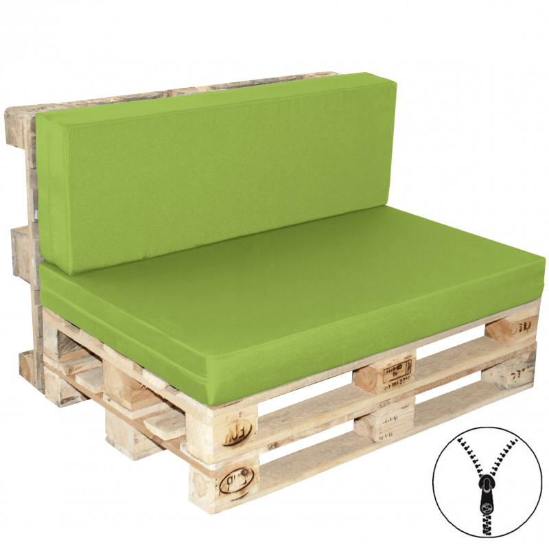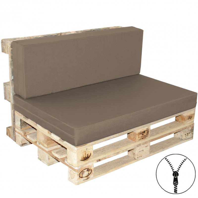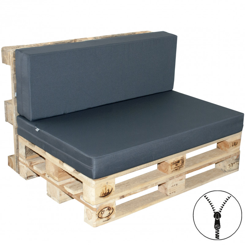 Pohodlné polstry na paletové sezení tvoří sedák a opěrka. Jako výplň je použit tuhý molitan. Polstrování je opatřeno zipy, což umožňuje vyjmout výplně a potahy vyprat. Potah je vyrobený z kvalitního 100% polyesteru, který je nenáročný na údržbu a přizpůsobený venkovnímu užití. Polstry jsou vhodné pro použití s klasickými EURO paletami (dodáváno bez palet).