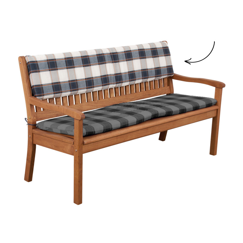 Opěrka na 3-místnou lavici na zahradní nábytek. Uchycení opěrky pomocí suchého zipu. Potah je nesnímatelný.Vyrobeno v České republice. Informace o produktu: rozměry polstru: cca 150 x 30 x 6 cm (výška x šířka x tloušťka) Materiál potah: bavlněná směsová tkanina výplň: molitan obalený do polyesterového rouna Balení obsahuje opěrku, sedák nutno dokoupit...