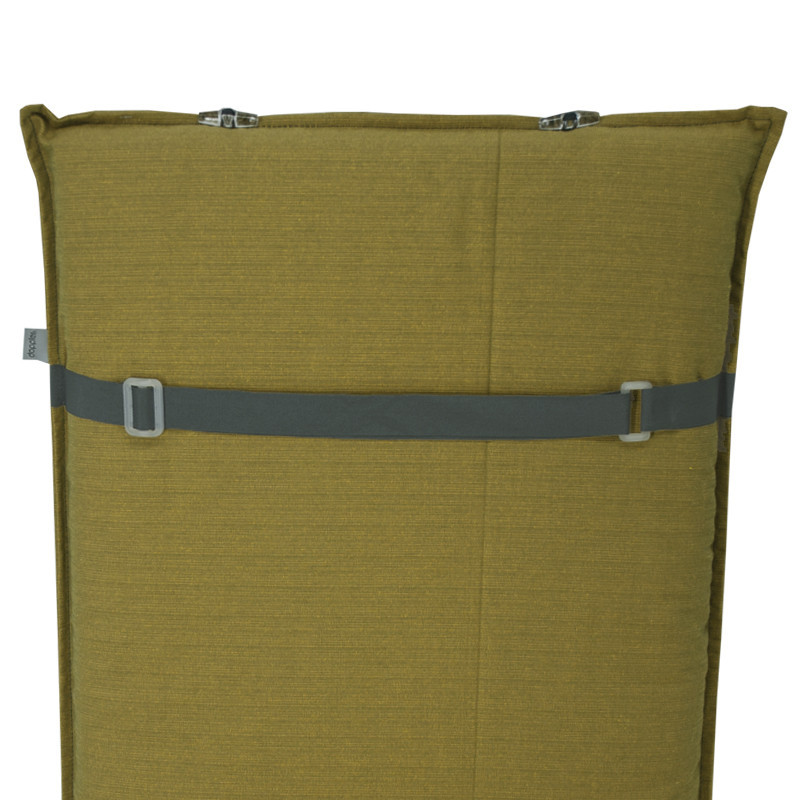 Polstr na zahradní lehátko řady ELEGANT je v provedení s obšitým lemem. Uchycení je pomocí posuvné spony. Díky sponě si můžete nastavit velikost dle rozměru a druhu židle, spona je pevná a nevytahuje se. Upevnění sedáku je pomocí dvou tkaniček v ohybu polstru. Polstr je v provedení se zipem, potah je snímatelný a je možnost ručního praní.