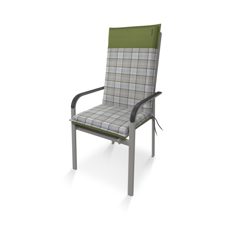 Polstr s vysokou opěrkou řady CASA. Elegantní polstr v módním odstínu, zdobený výšivkou Doppler na opěradle. Polstr je v provedení s obšitým lemem, bez prošití. Uchycení je pomocí posuvné spony. Díky sponě si můžete nastavit velikost dle rozměru a druhu židle, spona je pevná a nevytahuje se. Upevnění sedáku je pomocí dvou tkaniček v ohybu polstru. Potah je ošetřený speciální impregnací proti plísni a špíně. Díky této impregnaci zůstávají nečistoty na povrchu impregnace a nedostávají se do jednotlivých vláken potahu a látka se tak snadno čistí pouze navlhčeným hadříkem nebo houbičkou a polstr je odolnější vůči vlhkosti. Pozor, polstr není nepromokavý. Provedení je vhodné i do náročných podmínek kaváren, zahrádek a restaurací. Potah je nesnímatelný.