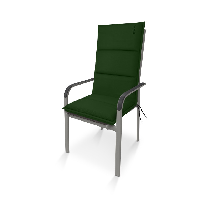 Polstr s vysokou opěrkou řady CITY. Elegantní polstr v módním odstínu, zdobený výšivkou Doppler na opěradle. Polstr je v provedení s obšitým lemem, prošitý 1x v sedáku, 2x v opěradle. Uchycení je pomocí posuvné spony. Díky sponě si můžete nastavit velikost dle rozměru a druhu židle, spona je pevná a nevytahuje se. Upevnění sedáku je pomocí dvou tkaniček v ohybu polstru. Síla polstru je optimální pro všechny druhy židlí. Provedení je vhodné i do náročných podmínek kaváren, zahrádek a restaurací. Potah je nesnímatelný.