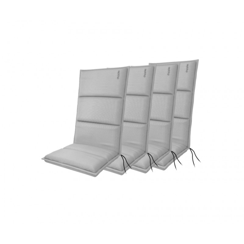 Polstr s vysokou opěrkou řady CITY. Elegantní polstr v módním odstínu, zdobený výšivkou Doppler na opěradle. Polstr je v provedení s obšitým lemem, prošitý 1x v sedáku, 2x v opěradle. Uchycení je pomocí posuvné spony. Díky sponě si můžete nastavit velikost dle rozměru a druhu židle, spona je pevná a nevytahuje se. Upevnění sedáku je pomocí dvou tkaniček v ohybu polstru. Síla polstru je optimální pro všechny druhy židlí. Provedení je vhodné i do náročných podmínek kaváren, zahrádek a restaurací. Potah je nesnímatelný.