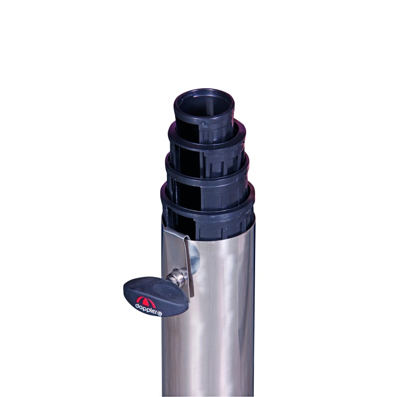 Perfektní držák pro Váš zahradní slunečník. Do horní kotvy můžete použít středový slunečník s průměrem tyče 32 až 60 mm, se dvěma pojistnými šrouby. Při uskladnění slunečníku je možno horní část demontovat a dolní část zajistit krytkou. K dispozici jsou redukční kroužky (52/48/38).