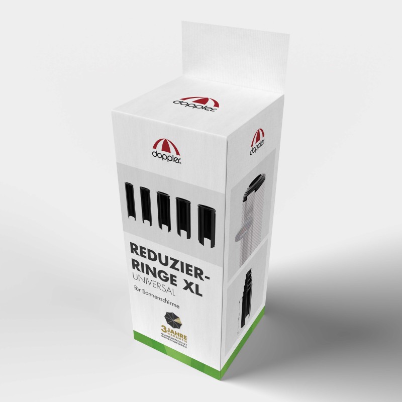 S touto sadou 5 redukčních kroužků můžete přizpůsobit různé stojany na deštníky s různými průměry. Redukční kroužky jsou vhodné pouze pro žulové stojany.