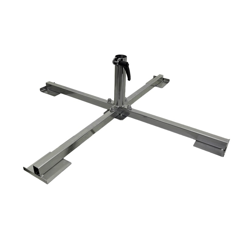 Stojan z nerezové oceli je vhodný pro betonové nebo žulové desky 50×50 cm a zajistí pevnou stabilitu i u větších slunečníků do průměru 500 cm. Pro správnou funkci je nutné zvolit odpovídající hmotnost dlaždic.