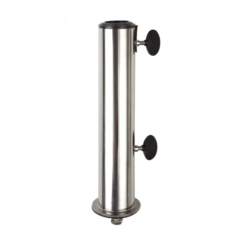 Tento stojan ze světle šedé leštěné žuly je vybavený 2 koly a rozšiřitelnou trolejovou rukojetí pro snadnější přesouvání. Slunečník se kotví do trubky z nerezové oceli a zajišťuje pomocí dvou pojistných šroubů. Trubka má několik redukčních kroužků, které umožňují použití průměrů tyče slunečníku 32–60 mm. Díky hmotnosti 70 kg je zajištěna bezpečná...