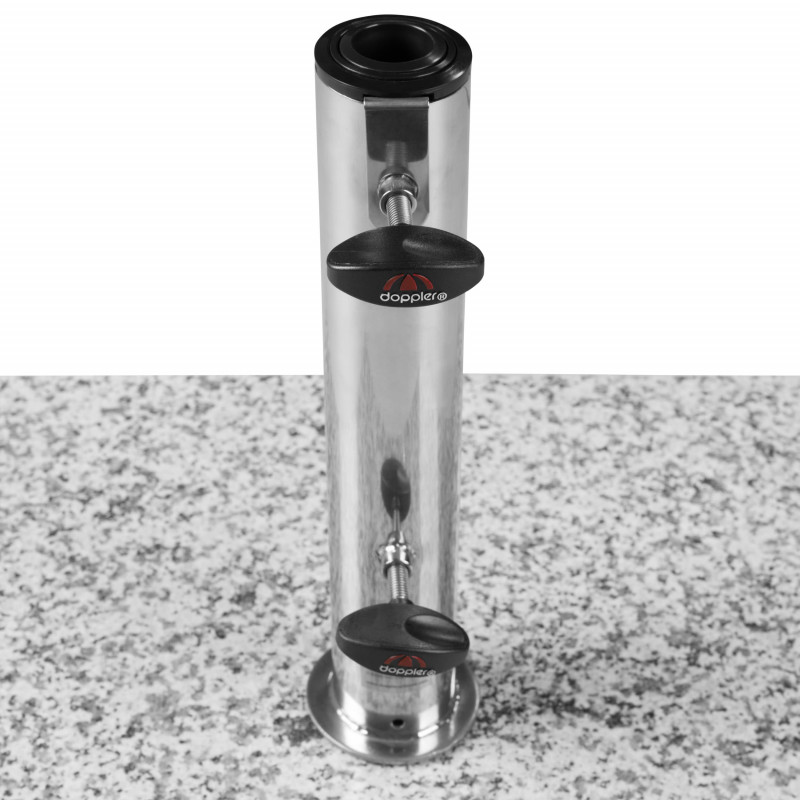 Vyroben ze světle šedé žuly s 2 koly a rozšiřitelnou trolejovou rukojetí. Vhodný pro snadnou přepravu. Nerezová tyč má několik redukčních kroužků a umožňuje použití průměrů slunečníku do max. 48 mm (od 25–48 mm). Slunečník se kotví do tyče (trubka z nerezové oceli) pomocí dvou pojistných šroubů. Žula je velmi odolná vůči povětrnostním vlivům a proto může...