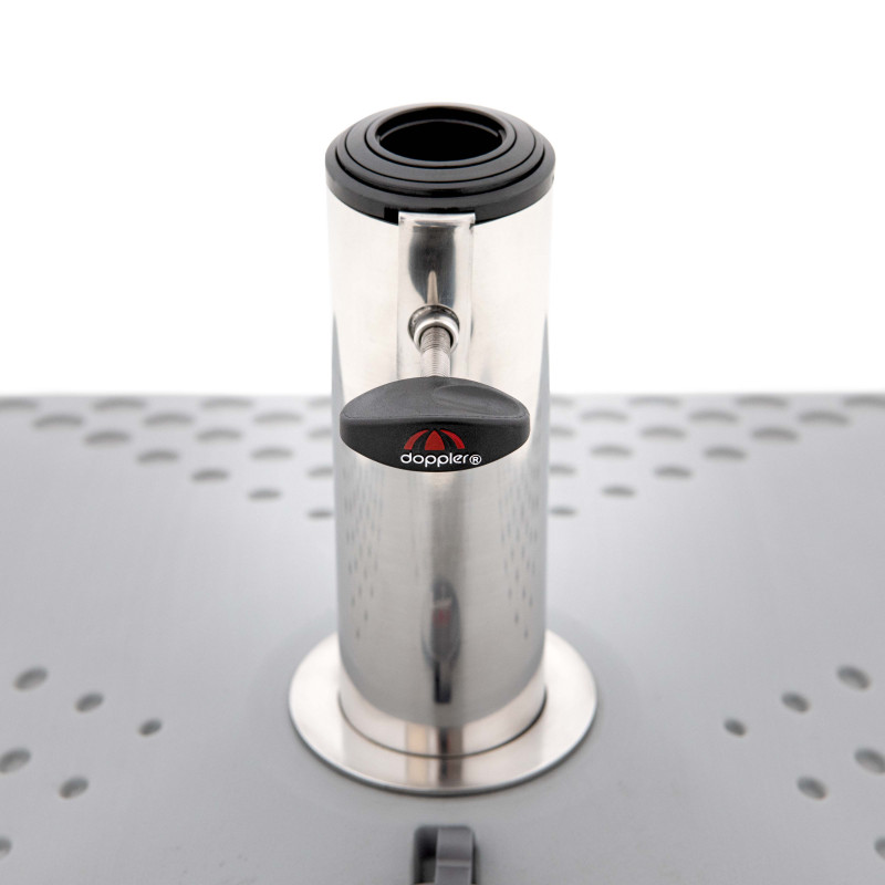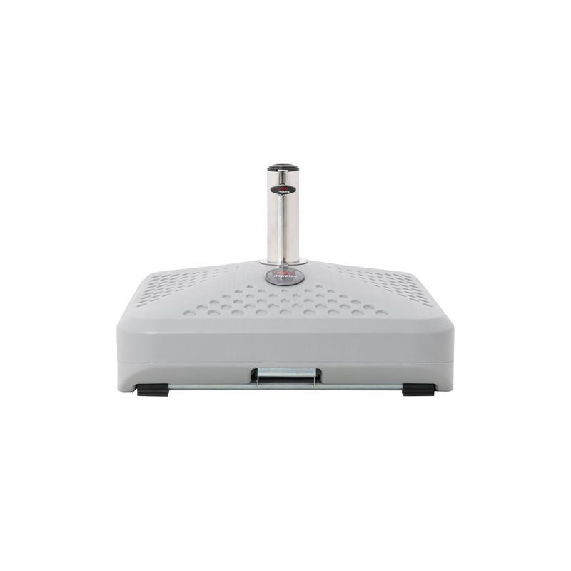 Plnitelný stojan Active 50 l nabízí vše, co si můžete od stojanu přát. Je vybavený velkými pojezdovými kolečky, které umožňují stojan se slunečníkem snadno a rychle přesunout tam, kde je to nejvíce třeba. Má moderní, elegantní design, díky kterému zapadne do každého prostředí. Zaoblené hrany podstavce navíc zabraňují nebezpečí poranění. Jeho robustní konstrukce z kvalitních materiálů dodává stojanu na odolnosti a dlouhé životnosti. Pod zesíleným plastovým vrchním krytem se skrývá vysoce odolná spodní konstrukce z oceli. Slunečník lze do stojanu jednoduše ukotvit pomocí trubky z nerezové oceli a zajišťovacího šroubu. Ke stojanu navíc dodáváme 5 redukčních vložek, díky nimž je možné stojan využít pro široké spektrum slunečníků s průměrem tyče od 32 do 60 mm (vždy je nutné zohlednit velikost slunečníku a doporučené minimální zatížení každého modelu, průměr slunečníku by neměl přesáhnout 350 cm).