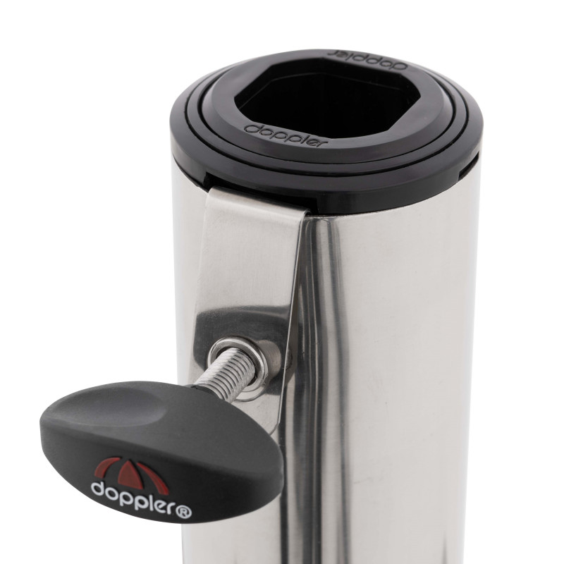 Žulový stojan na slunečník je vybavený 5 kolečky, což umožňuje jej snadno a pohodlně přesouvat, kam je zrovna třeba. Stojan je určený pro středně velké slunečníky s průměrem střechy až do 300 cm. Odolnou a tvrdou desku z leštěné žuly doplňuje trubka z nerezové oceli. Slunečník včetně stojanu lze snadno oddělit od základny pomocí chytrého systému Click-It. K zajištění maximální stability slunečníku ve stojanu slouží 2 zajišťovací šrouby. Včetně redukčních kroužků, umožňujících použití pro průměry tyče slunečníku od 32 do 60 mm. Žula je mimořádně tvrdá a odolná, takže podstavec je absolutně odolný vůči vlivům počasí.