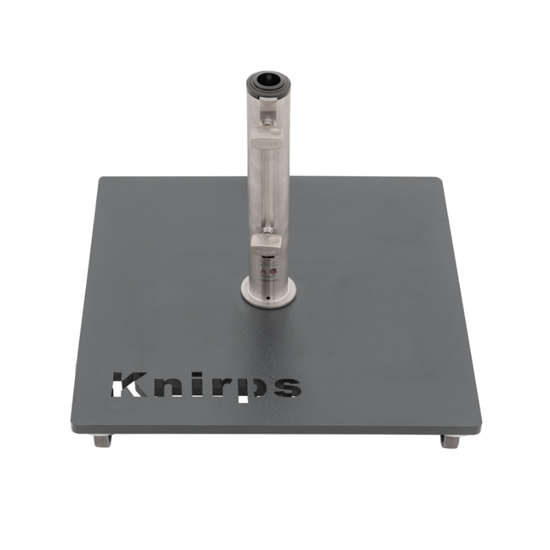 Knirps 50 kg je prémiový kovový podstavec s kolečky pro bezpečné zatížení slunečníků.