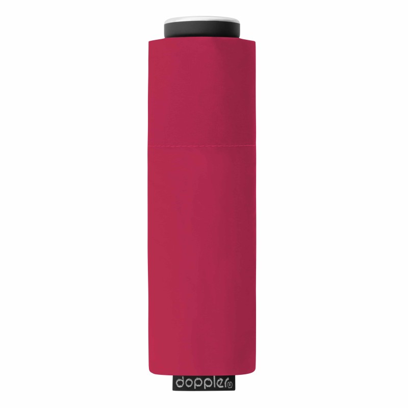 Dámský skládací deštník v extra malém kompaktním provedení. Jednobarevný potah polyester v červené barvě. Potah vyrobený z tenké tkaniny pongee je příjemný na dotek a odolný vůči změnám vlhkosti a teplot, nesráží se.