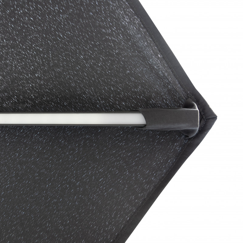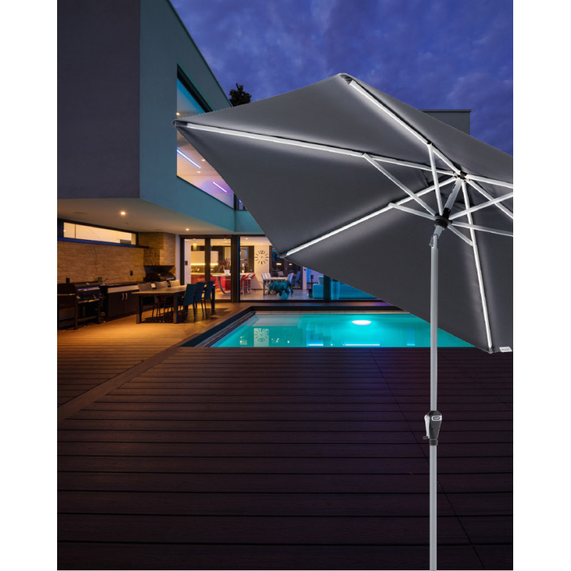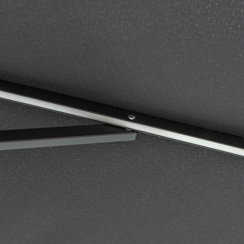 Zboží s drobnou vadou – může vykazovat kosmetické vady nebo známky opravy. Produkt je plně funkční. Tento krásný slunečník s velkou střechou s UV filtrem v elegantní antracitové barvě Vám poskytne dokonalou ochranu před slunečními paprsky na Vašem balkónu nebo zahradě a prodlouží Vaše letní večery díky integrovanému LED osvětlení v ramenech slunečníku....
