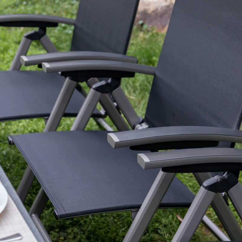 Polohovací zahradní křeslo AVANTAGE je vyrobeno z bezúdržbových materiálů. Stabilní hliníková konstrukce v antracitové barvě je doplněna výpletem z kvalitní umělé textilie. Polohovací systém opěrky zaručí maximálně komfortní odpočinek. Vše doplňují stabilní hliníkové područky.
