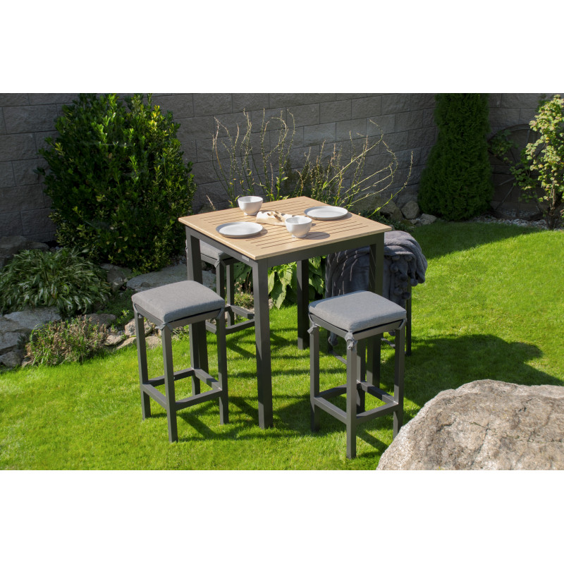 EXPERT WOOD antracit barová souprava 4+1 se hodí k podávání chlazených nápojů či občerstvení pro Vaše hosty. Jednoduchý kovový design se hodí do exteriérů i interiérů. Souprava je obzvlášť vhodná do restaurací, kaváren či ostatních gastro zařízení. Velikou předností soupravy je vysoký stůl EXPERT WOOD antracit. Stůl má stabilní celohliníkovou konstrukci...